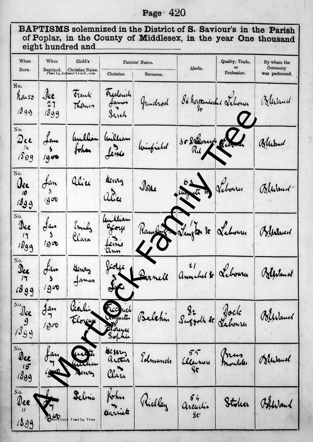 | Baptism | 3 January 1900 (Age 17 days) Poplar, E London, England Address: Saint Saviour, Northumbria Street, Tower Hamlets |