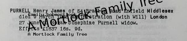 | Probate | 27 June 1958 (3 months after death) London, England Note: Effects: £1637 16s 9d to Norah Josephine Burnell, Widow |