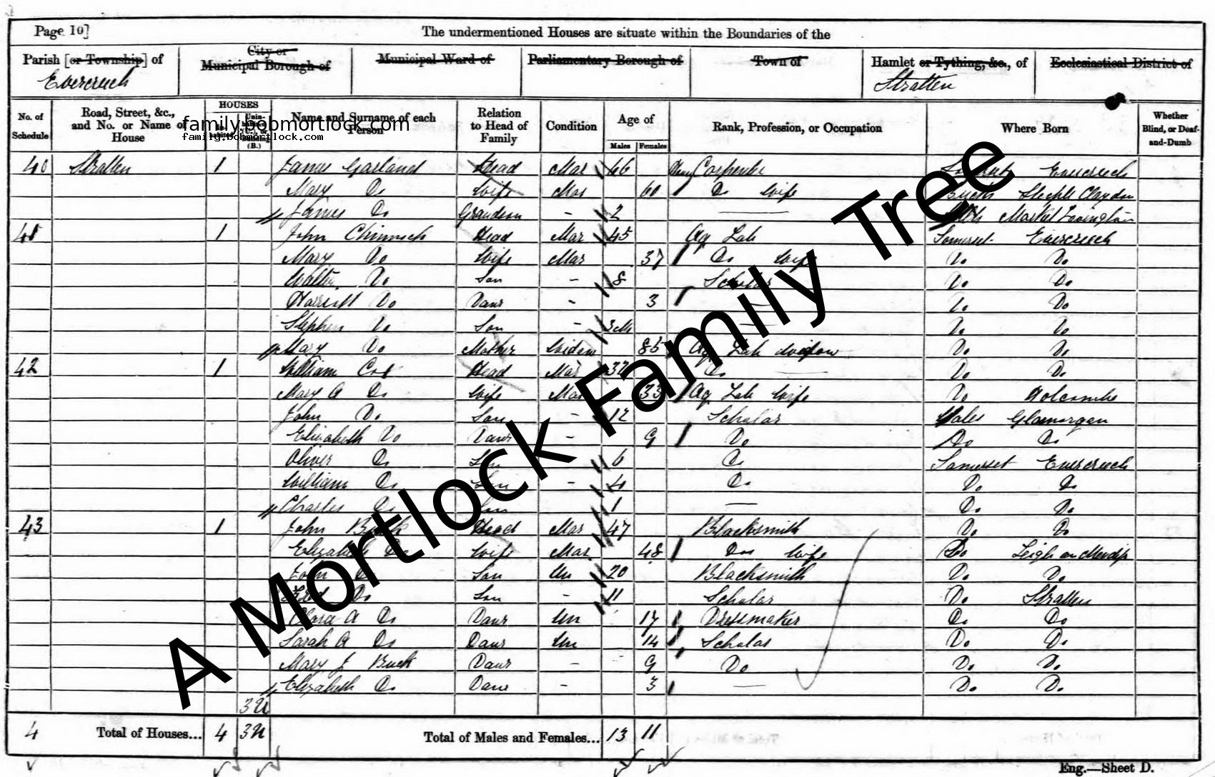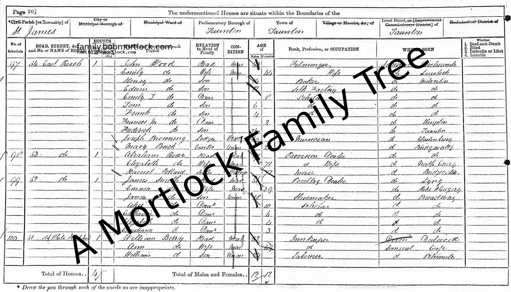 | Census | 2 April 1871 (Age 19) Taunton, Somerset, England Address: 34 East Reach