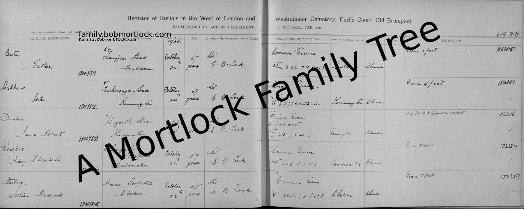| Burial | 25 October 1933 (Age 47) West of London & Westminster Cemetery Address: Earls Court, Brompton, W London, England |