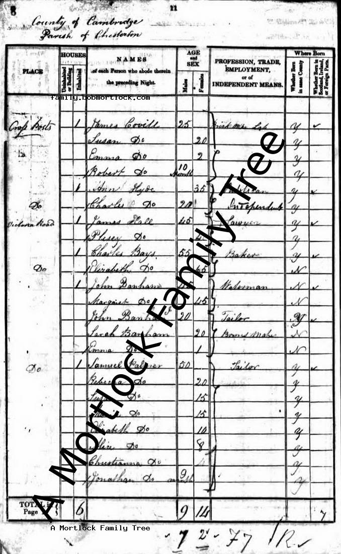 | Census | 6 June 1841 (Age 69) Chesterton, Cambridgeshire, England Address: Victoria Road