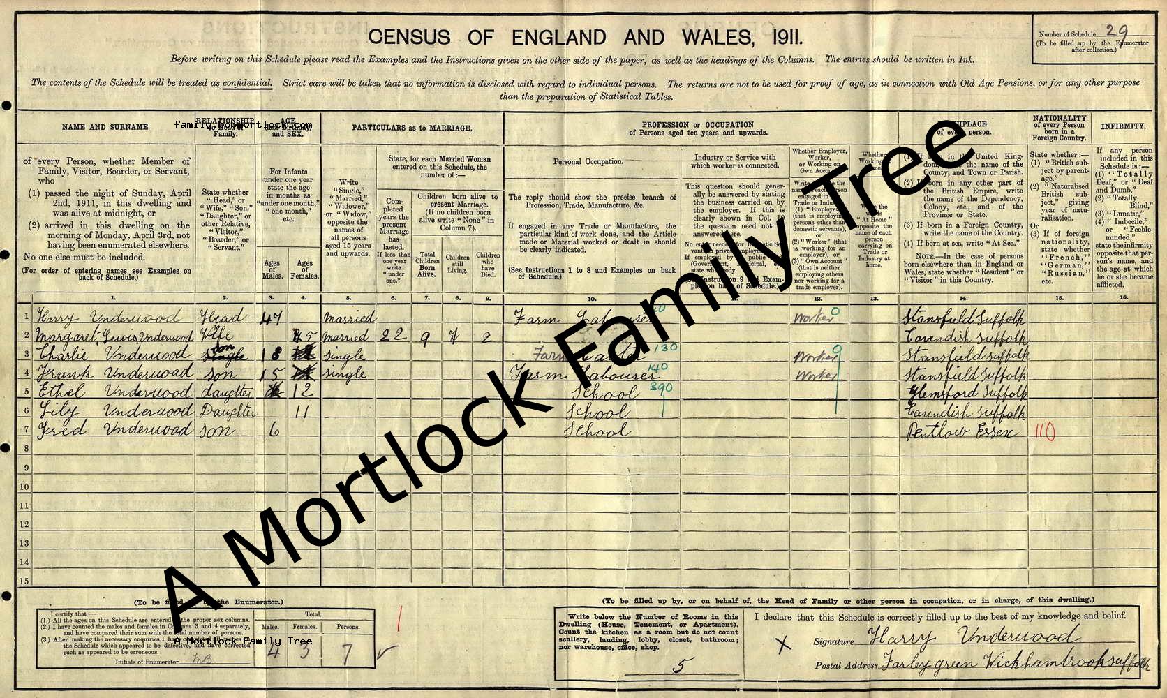 | Census | 2 April 1911 (Age 6) Wickhambrook, Suffolk, England Address: Farley Green