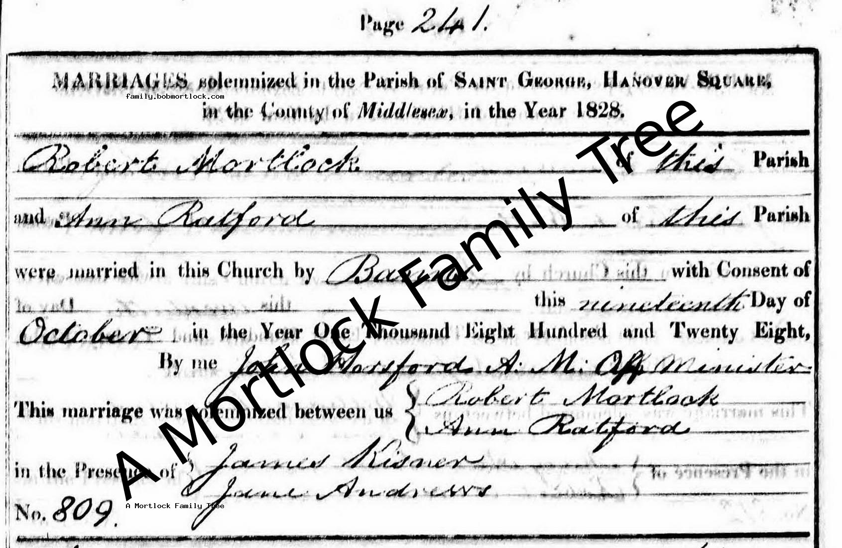 | Religious Marriage | Robert MORTLOCK - View family 19 October 1828 (Age 26) Westminster, London, England Address: St George, Hanover Square