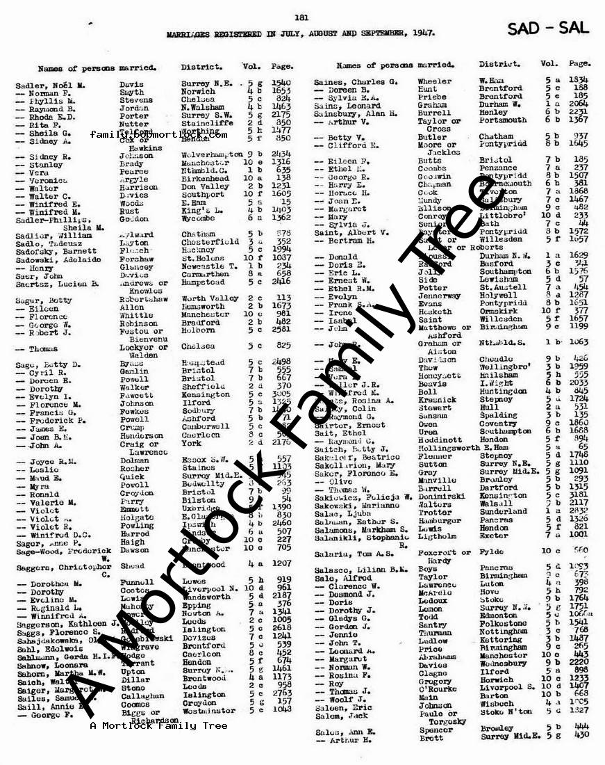 Marriage: 11 September 1947 — Stoke Newington, N London, England |
