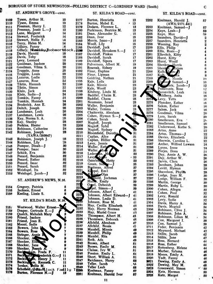 | Residence | 1948 Stoke Newington, N London, England Address: 16 St Kildas Road |