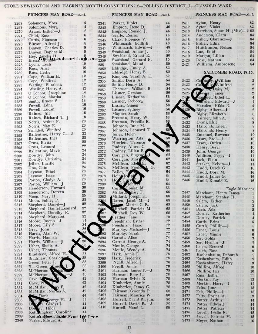 | Residence | 1964 Stoke Newington, N London, England Address: 2 Eagle Mansions, Salcombe Road |