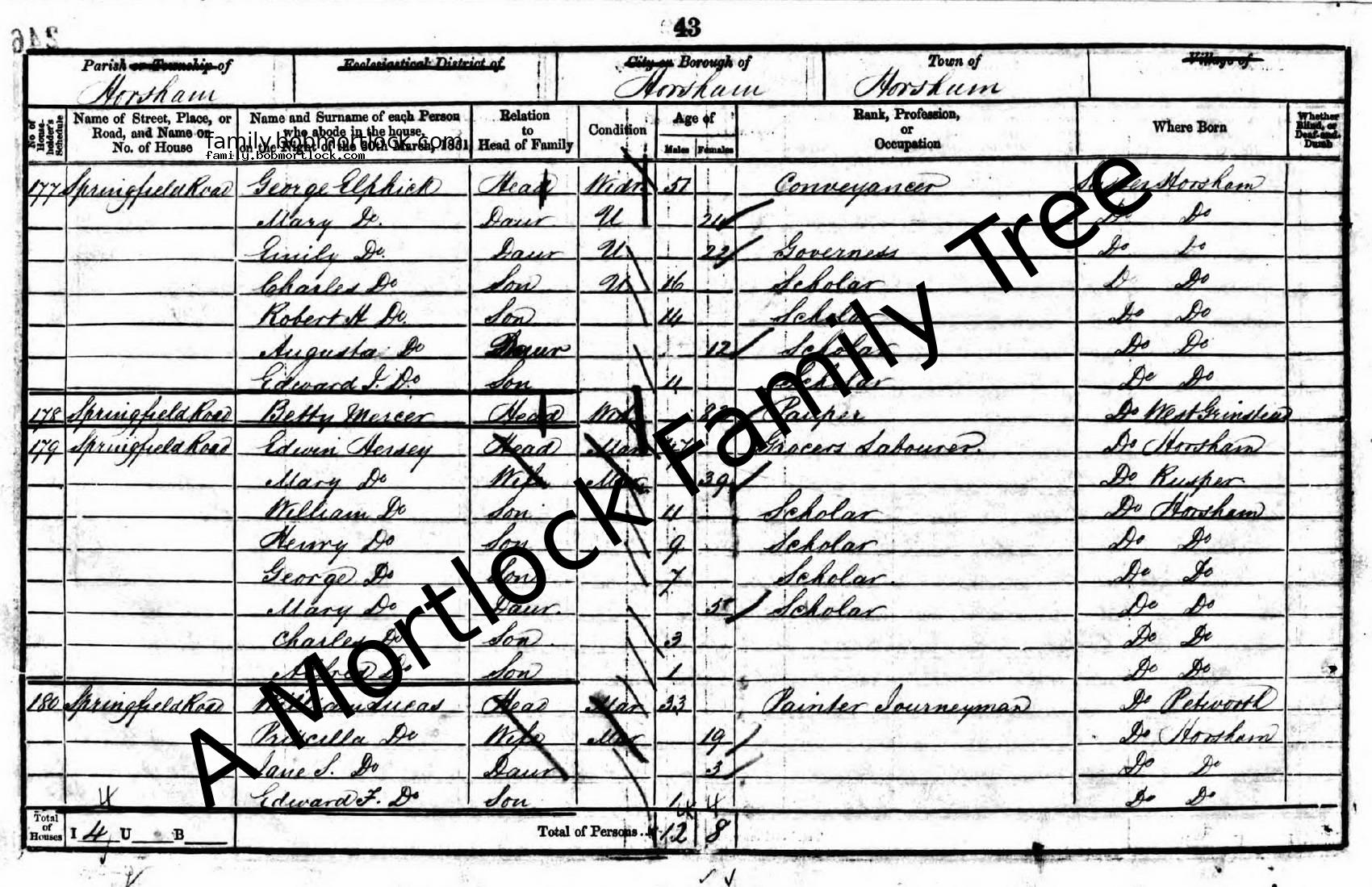 | Census | 30 March 1851 (Age 5) Horsham, Sussex, England |