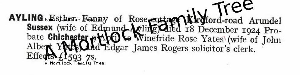 | Probate | 9 April 1925 (3 months after death) Chichester, Sussex, England |