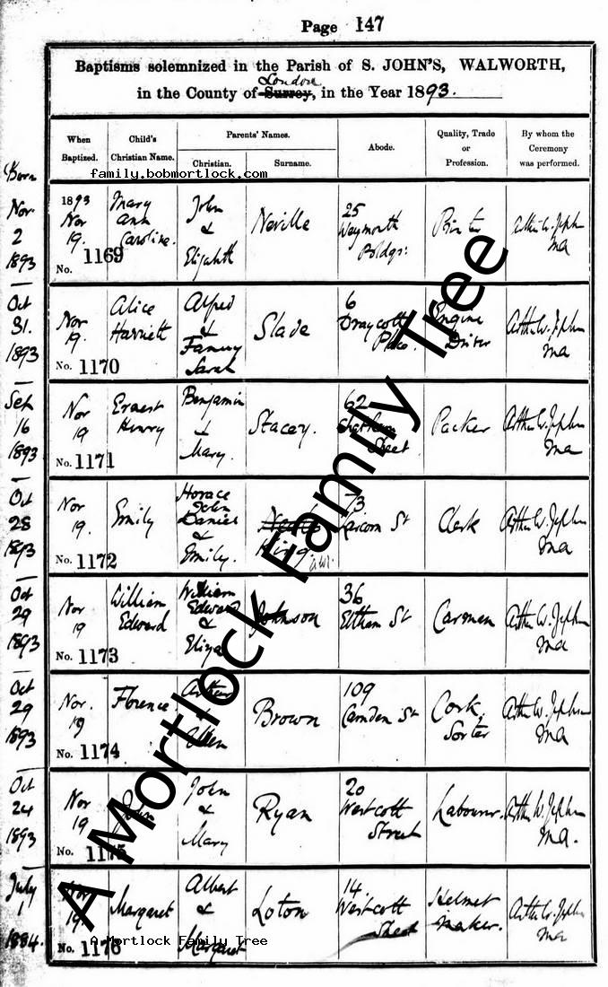 | Baptism | 19 November 1893 (Age 9) Walworth, S London, England Address: St John |