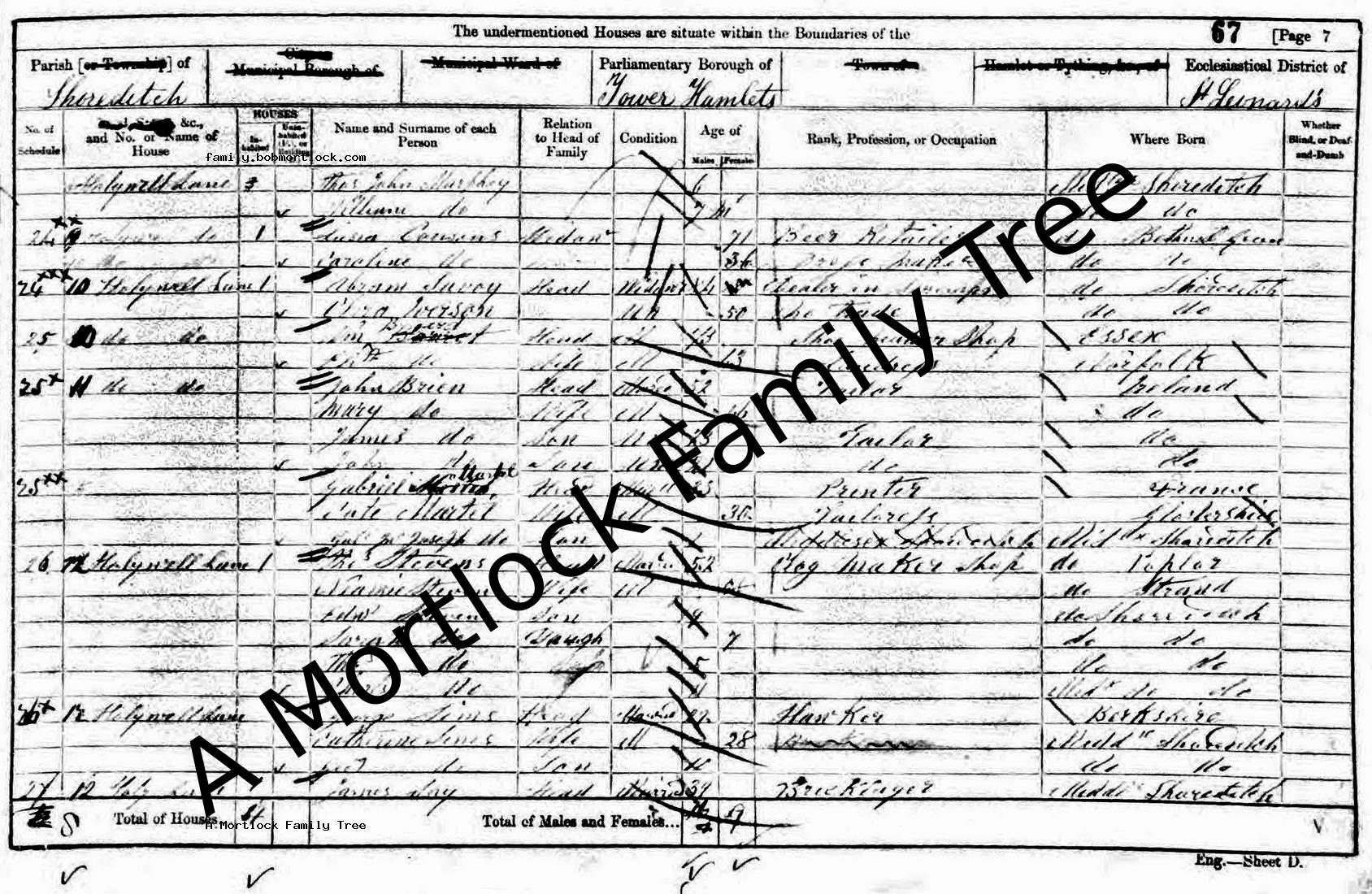| Census | 7 April 1861 (Age 39) Shoreditch, E London, England Address: 12 Holywell Lane