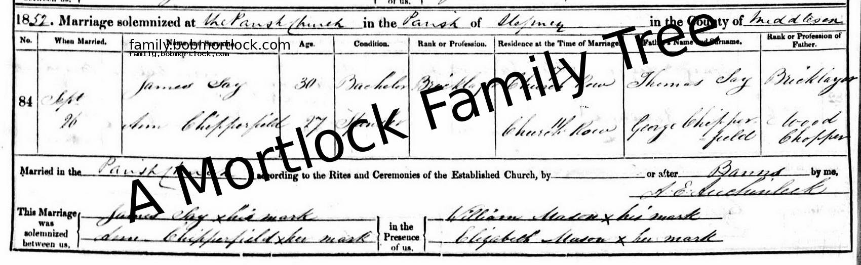 | Religious Marriage | Ann CHIPPERIELD - View family 26 September 1852 (Age 30) Stepney, E London, England Address: The Parish Church