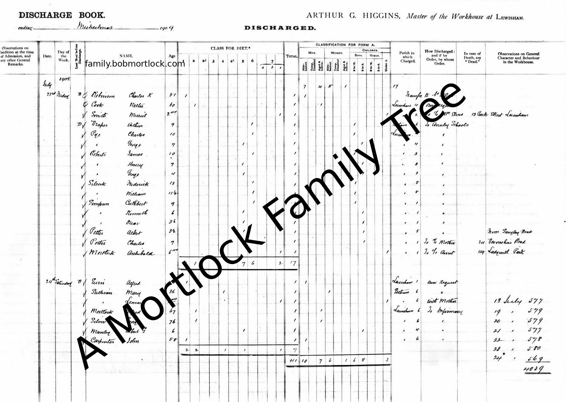 | Workhouse | Admissions & Discharges 23 July 1909 (Age 67) Lewisham, SE London, England |