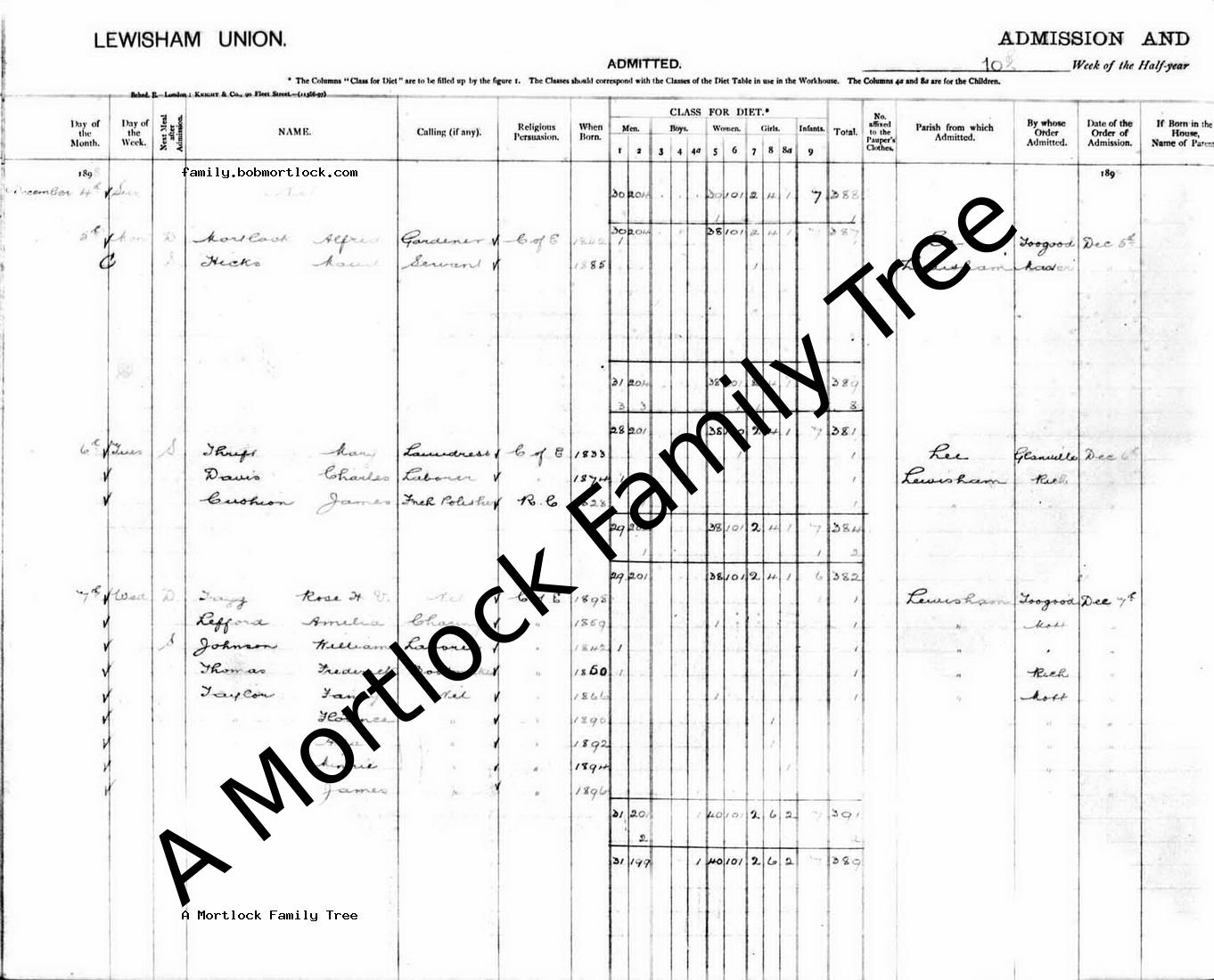 | Workhouse | Admissions & Discharges 5 December 1898 (Age 56) Lewisham, SE London, England |
