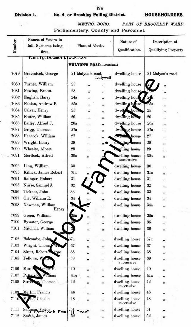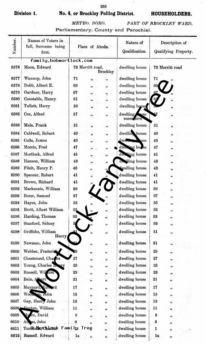 | Residence | 1905 (Age 63) Lewisham, SE London, England Address: 71 Merritts Road |
