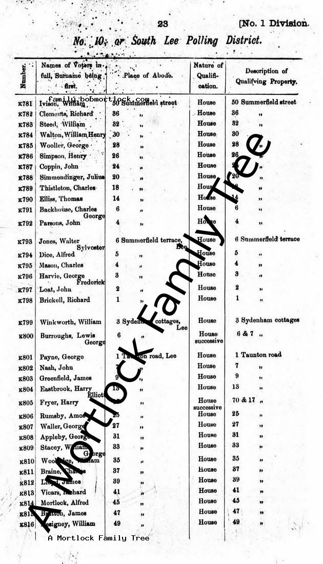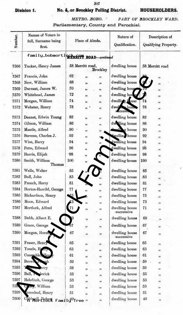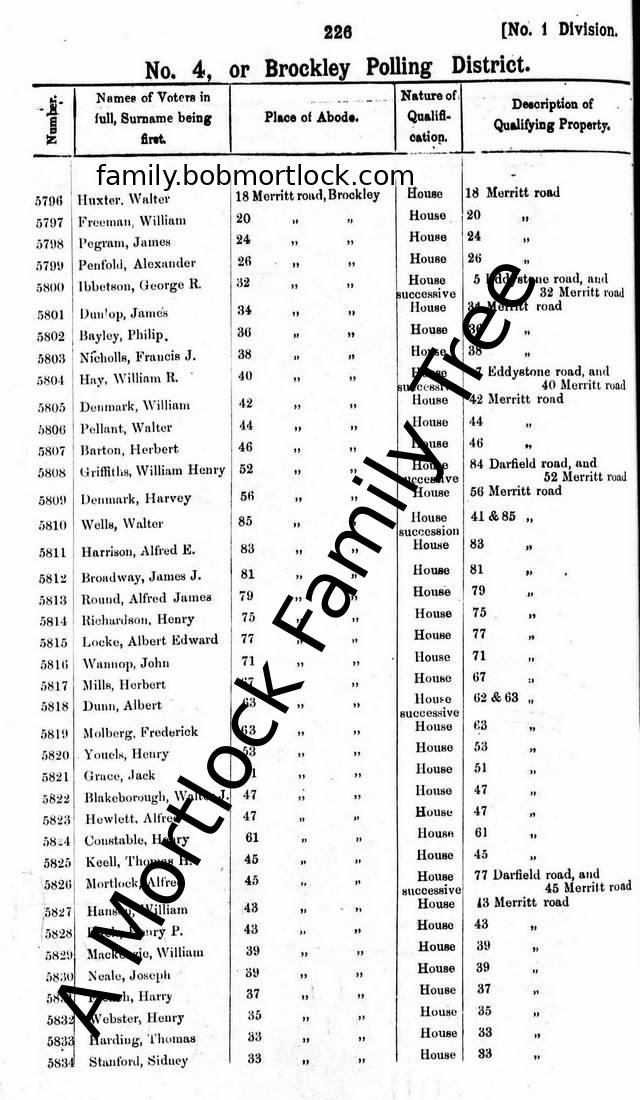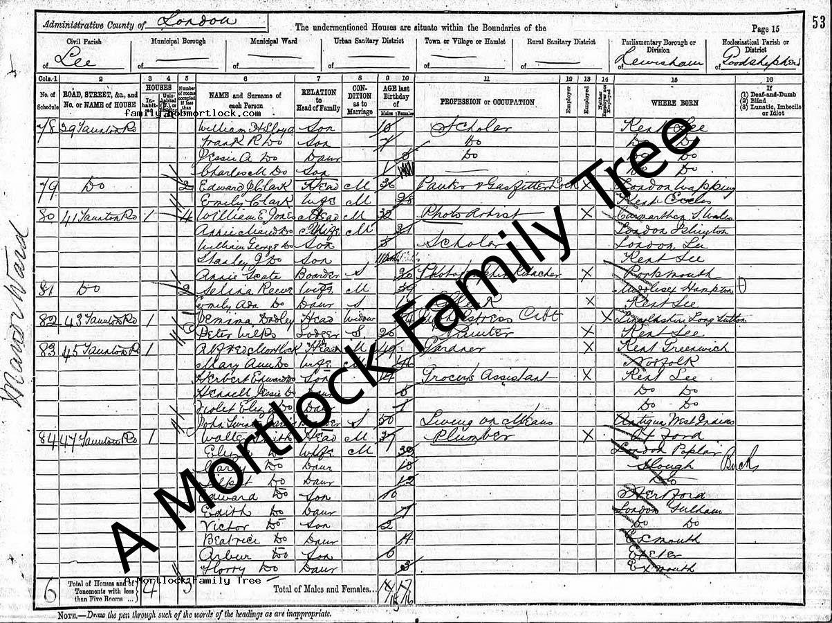 | Residence | 1900 (Age 58) Lewisham, SE London, England Address: 45 Merritt Road |