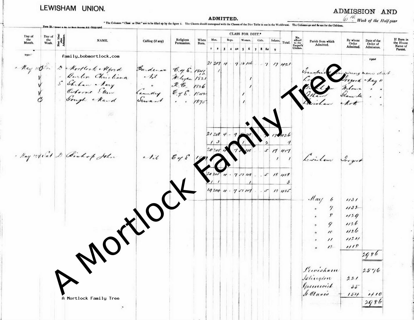 | Workhouse | Admissions & Discharges 11 May 1900 (Age 58) Lewisham, SE London, England |