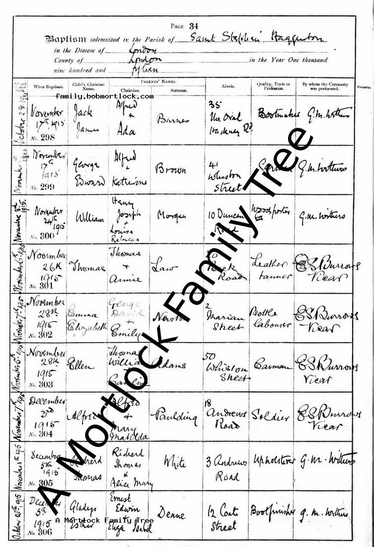 | Birth | 5 November 1915 Haggerston, E London, England Address: 50 Whiston Street |