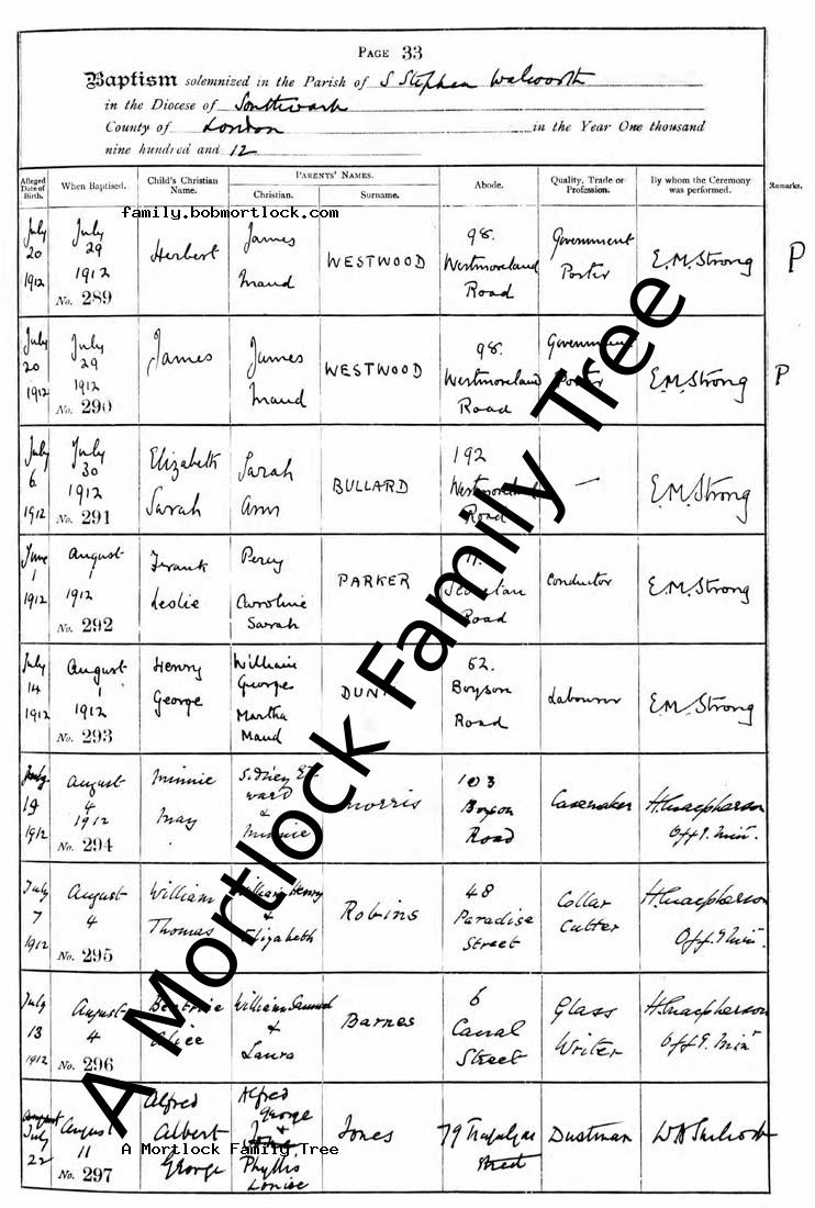 | Baptism | 4 August 1912 (Age 25 days) Walworth, S London, England Address: St Stephen |
