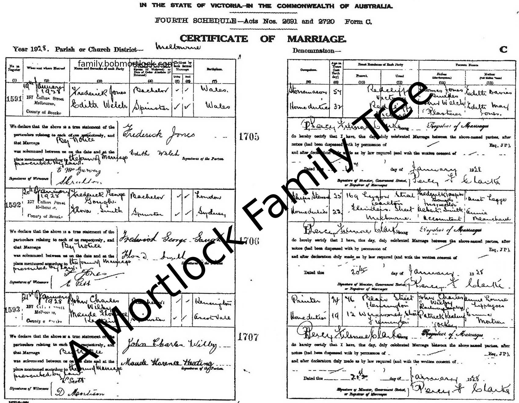 Civil Marriage: 20 January 1928 — Melbourne, Victoria, Australia |