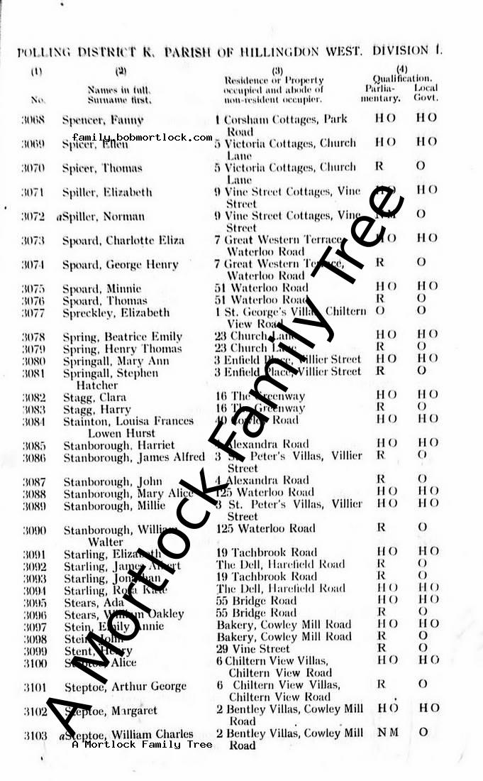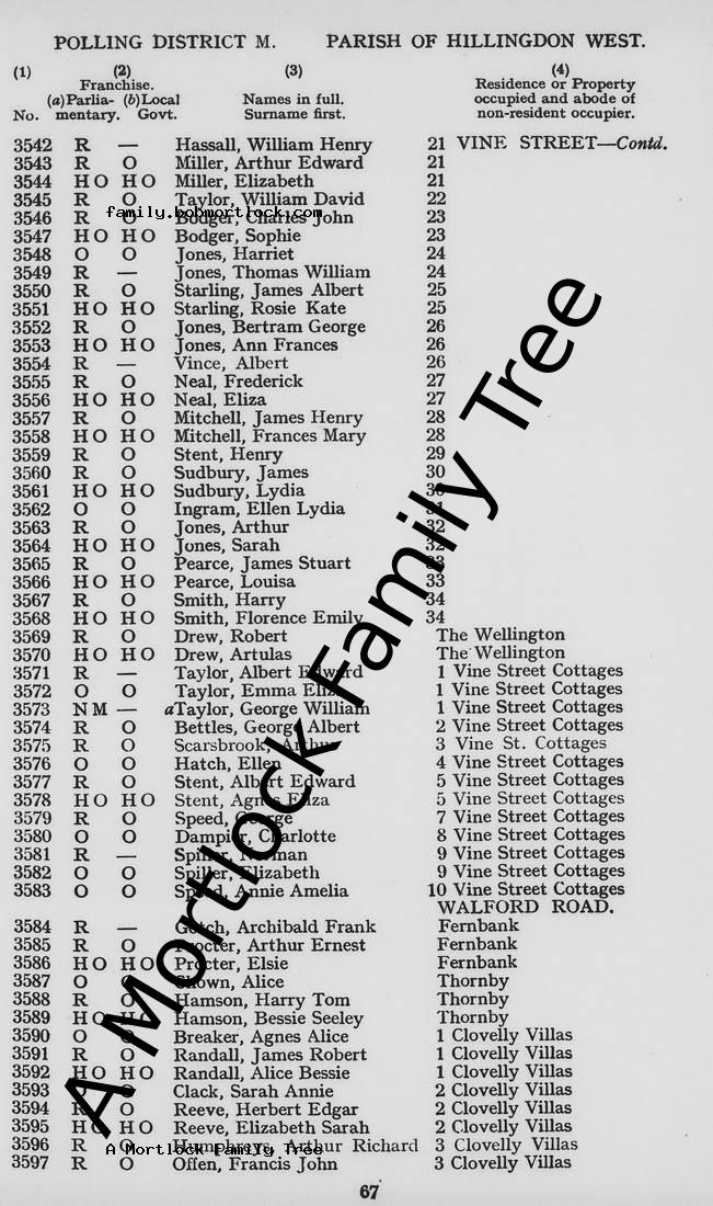 | Residence | 1930 (Age 43) Hillingdon, Middlesex, England Address: 25 Vine Street |