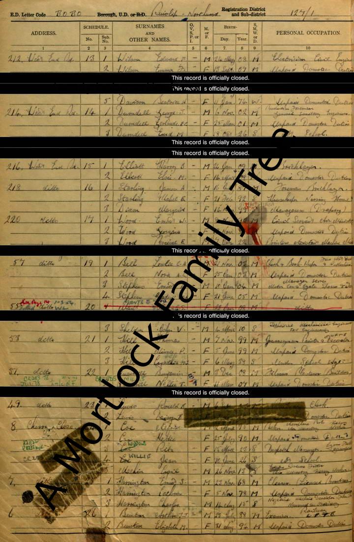 | Census | 29 September 1939 (Age 53) Ruislip, Middlesex, England Address: 218 West End Road