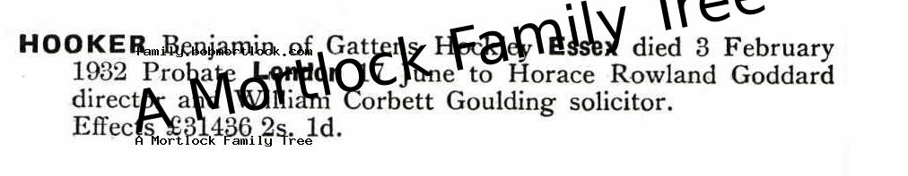 | Probate | 17 June 1932 (4 months after death) London, England Note: Effects: £31436 2s 1d |
