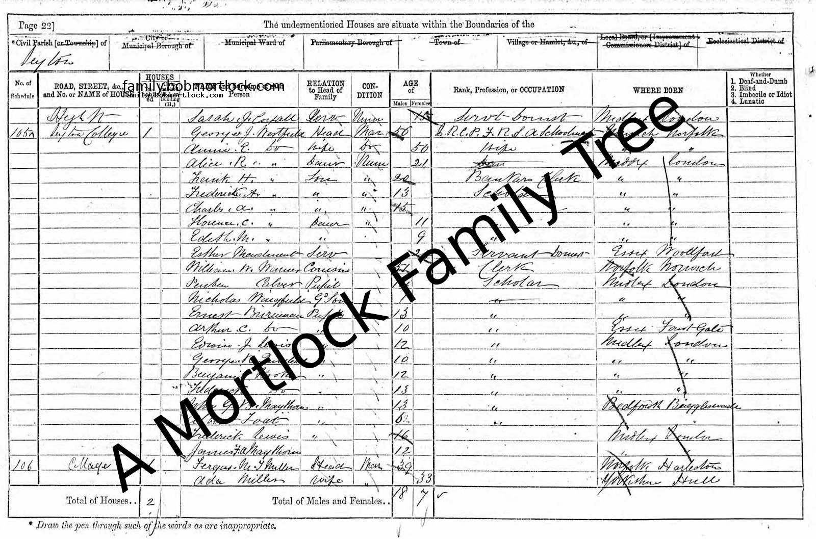 | Census | 2 April 1871 (Age 14) Leyton, E London, England Address: Leyton College |