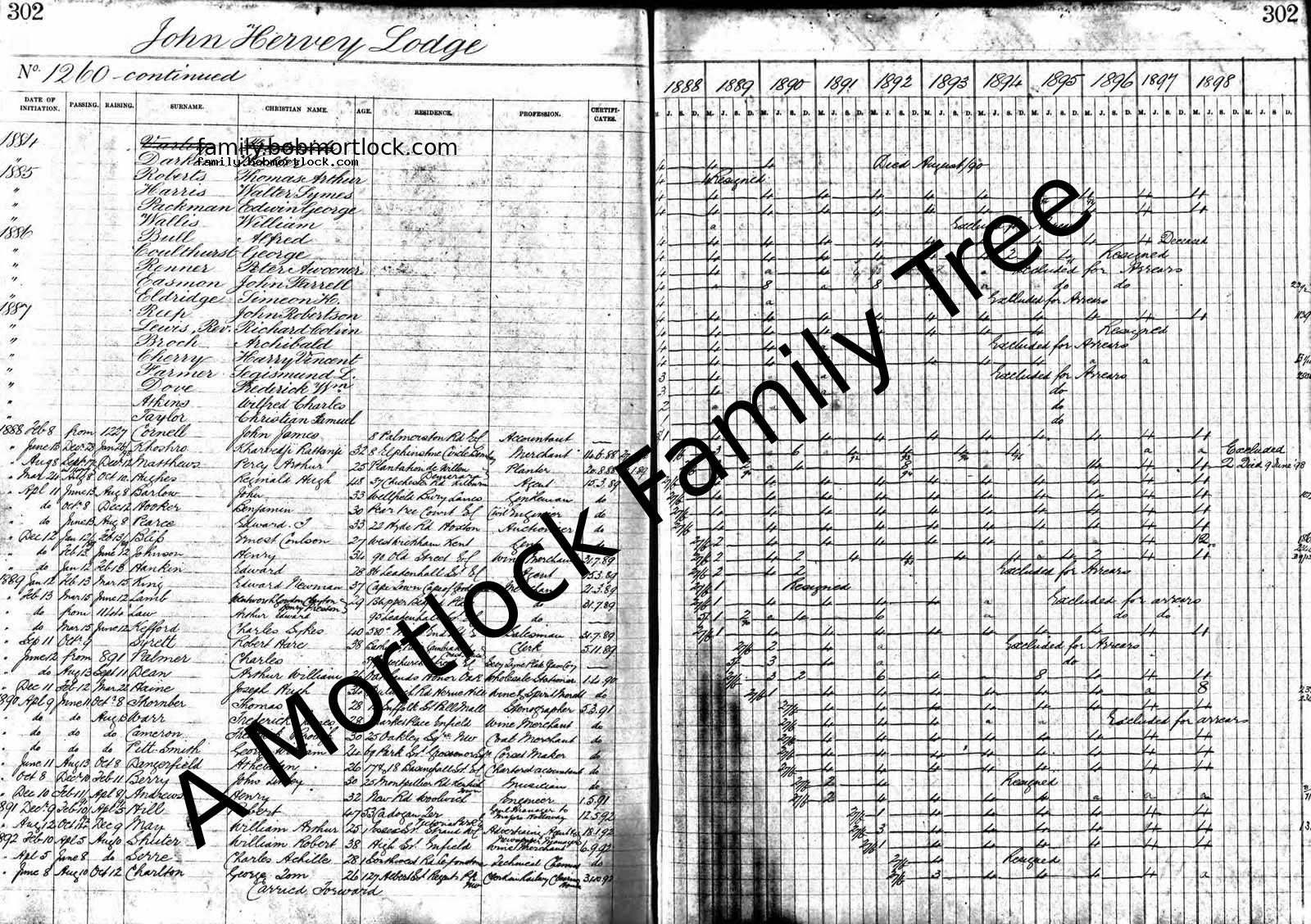 | Freemasons | Membership 11 April 1888 (Age 31)Note: John Hervey Lodge 1260 |