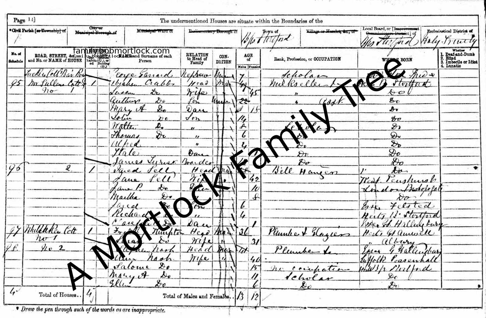 | Census | 2 April 1871 (Age 10) Bishops Stortford, Hertfordshire, England Address: 2 Mr Sullens Cottages