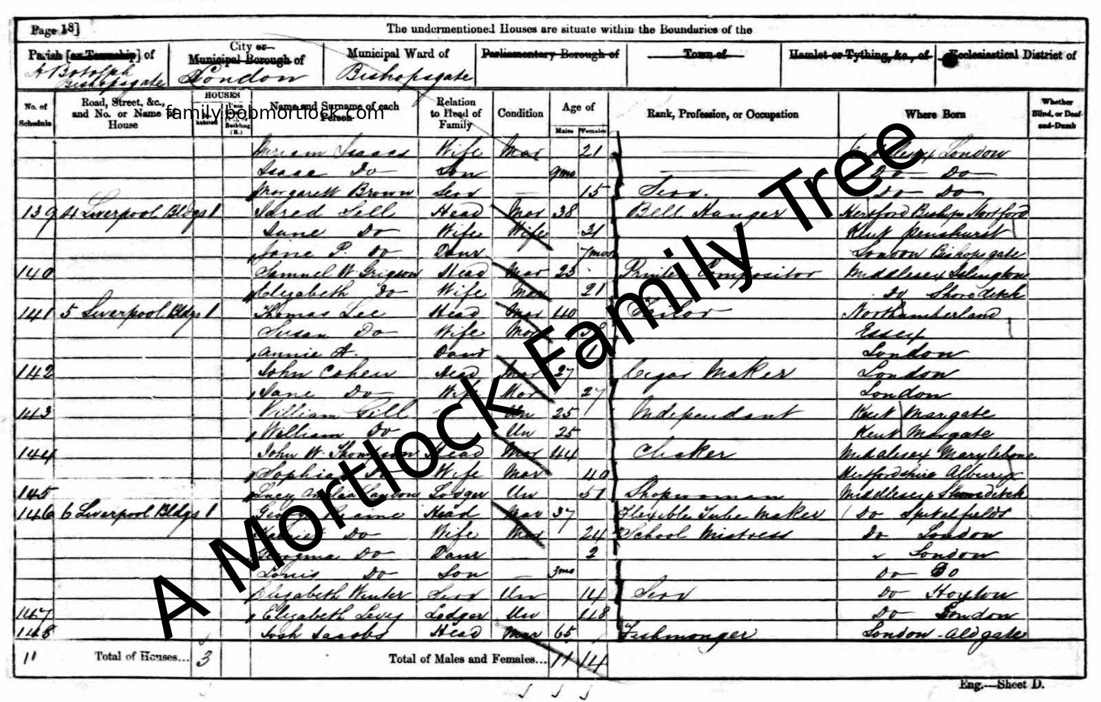 | Census | 7 April 1861 (Age 7 months) Bishopsgate, E London, England Address: 4 Liverpool Buildings