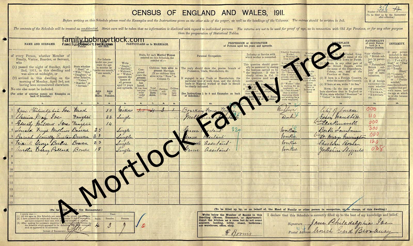 | Census | 2 April 1911 (Age 50) Hornsey, Middlesex, England Address: 44 The Broadway