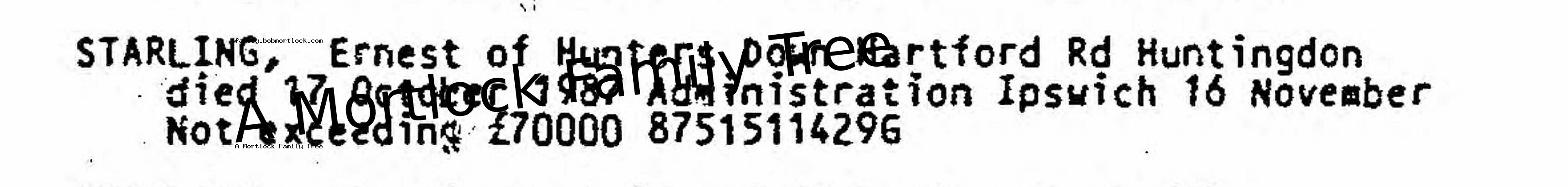 | Probate | 16 November 1987 (31 days after death) Ipswich, Suffolk, England Note: Effects: Not exceeding £70,000 |