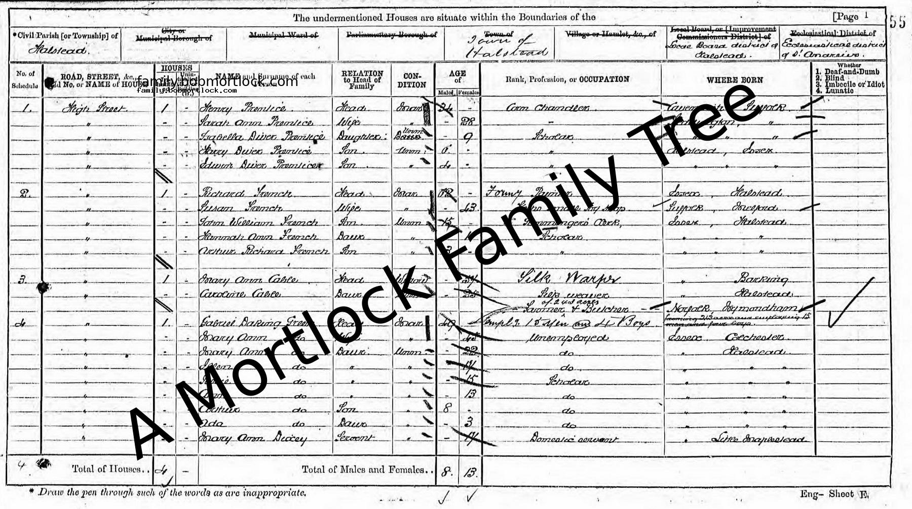| Census | 2 April 1871 (Age 9) Halstead, Essex, England Address: High Street