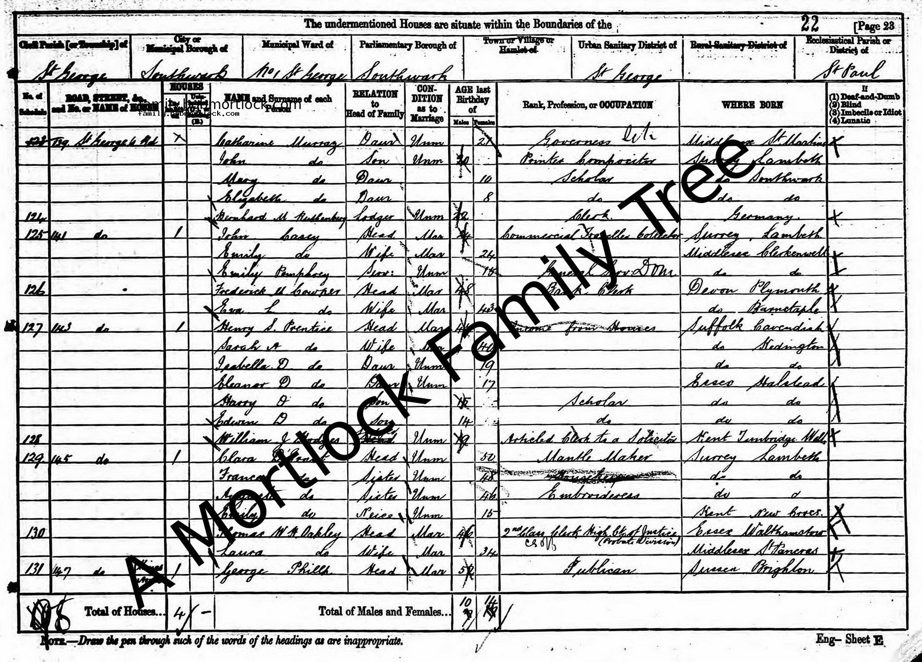| Census | 3 April 1881 (Age 19) Southwark, S London, England Address: 143 St Georges Road