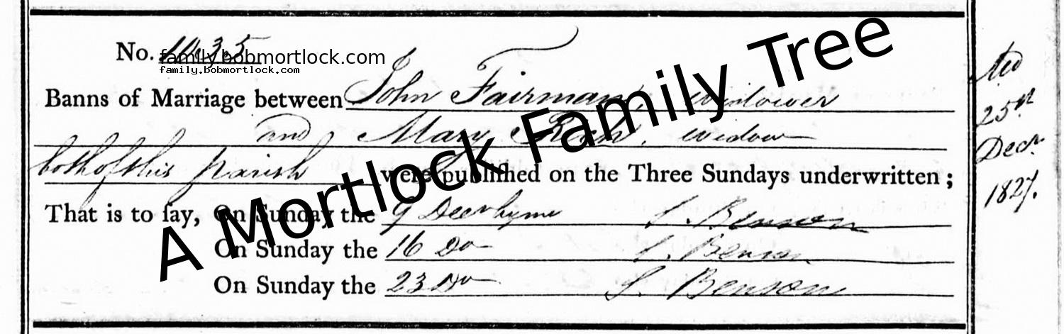 | Marriage Banns | John FAIRMAN - View family 16 December 1827 (Age 33) Southwark, S London, England Address: St Saviour |