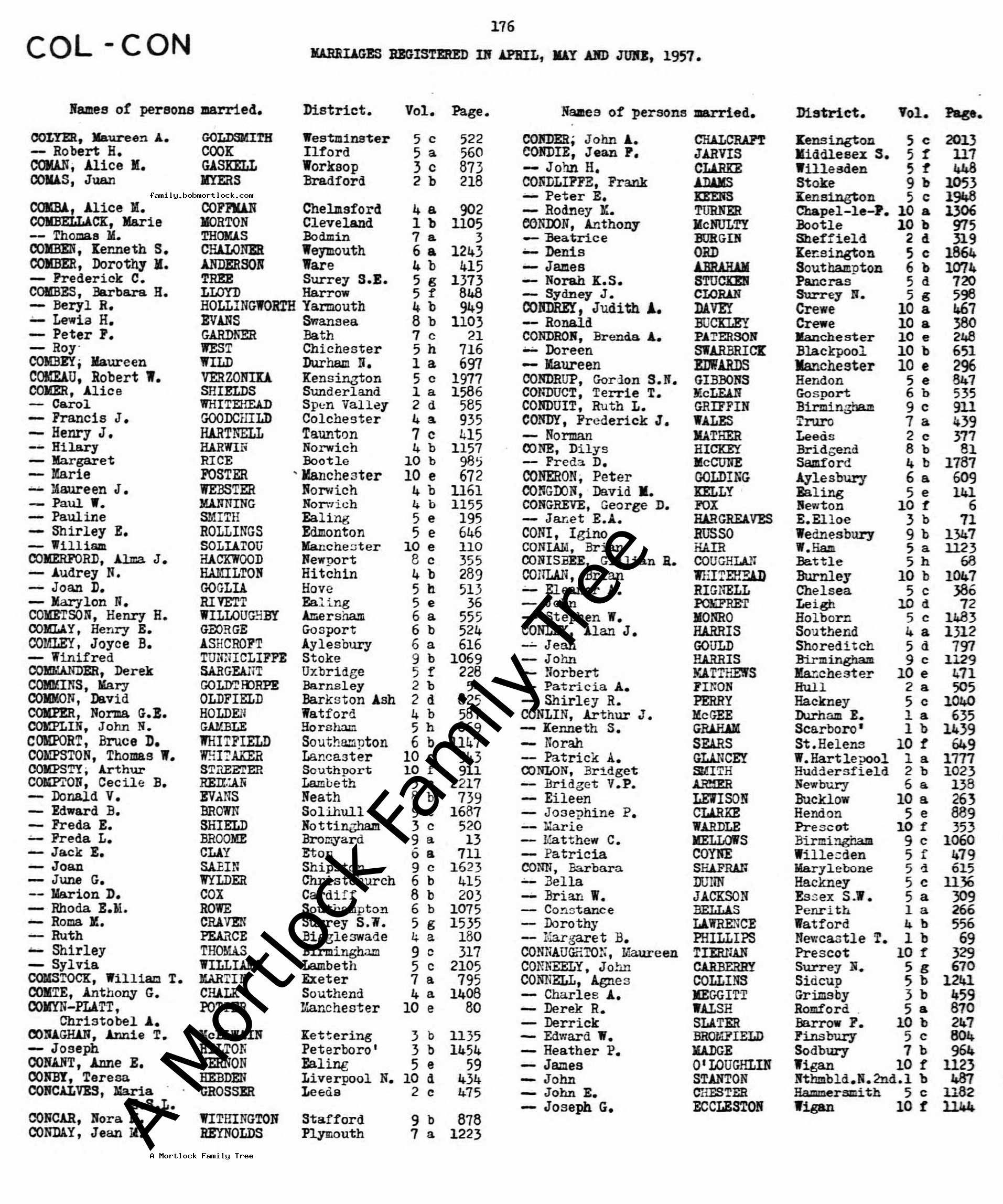 Religious Marriage: 1957 — Walthamstow, Essex, England |
