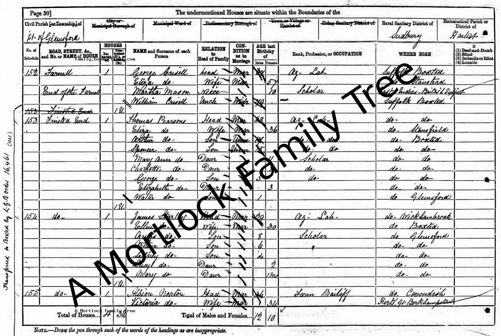 | Census | 30 March 1851 (Age 9) Boxted, Suffolk, England Address: Tittle Hall Cottage