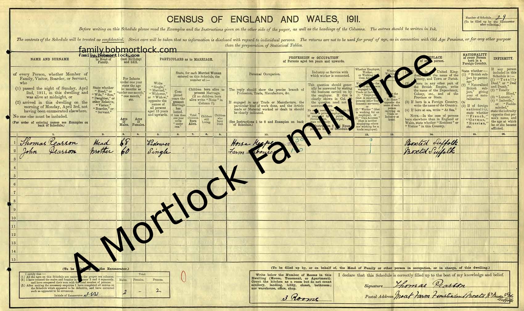 | Census | 2 April 1911 (Age 69) Boxted, Suffolk, England Address: Moat Farm