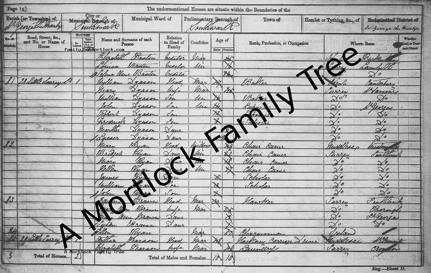 | Residence | 31 March 1901 (Age 41) Southwark, S London, England Address: 20 Westcott Street