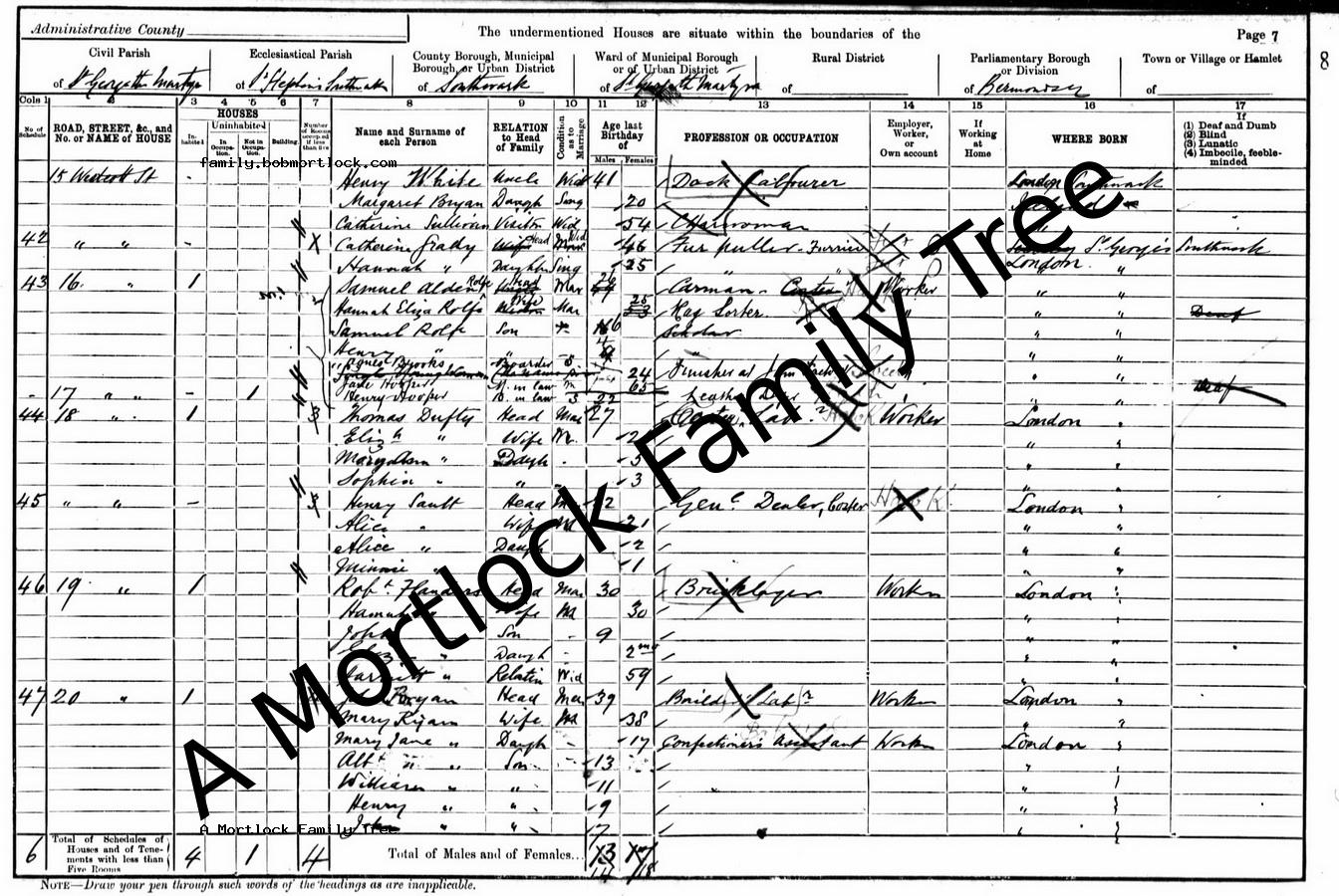 | Census | 5 April 1891 (Age 8) Southwark, S London, England Address: 31 Townsend Street