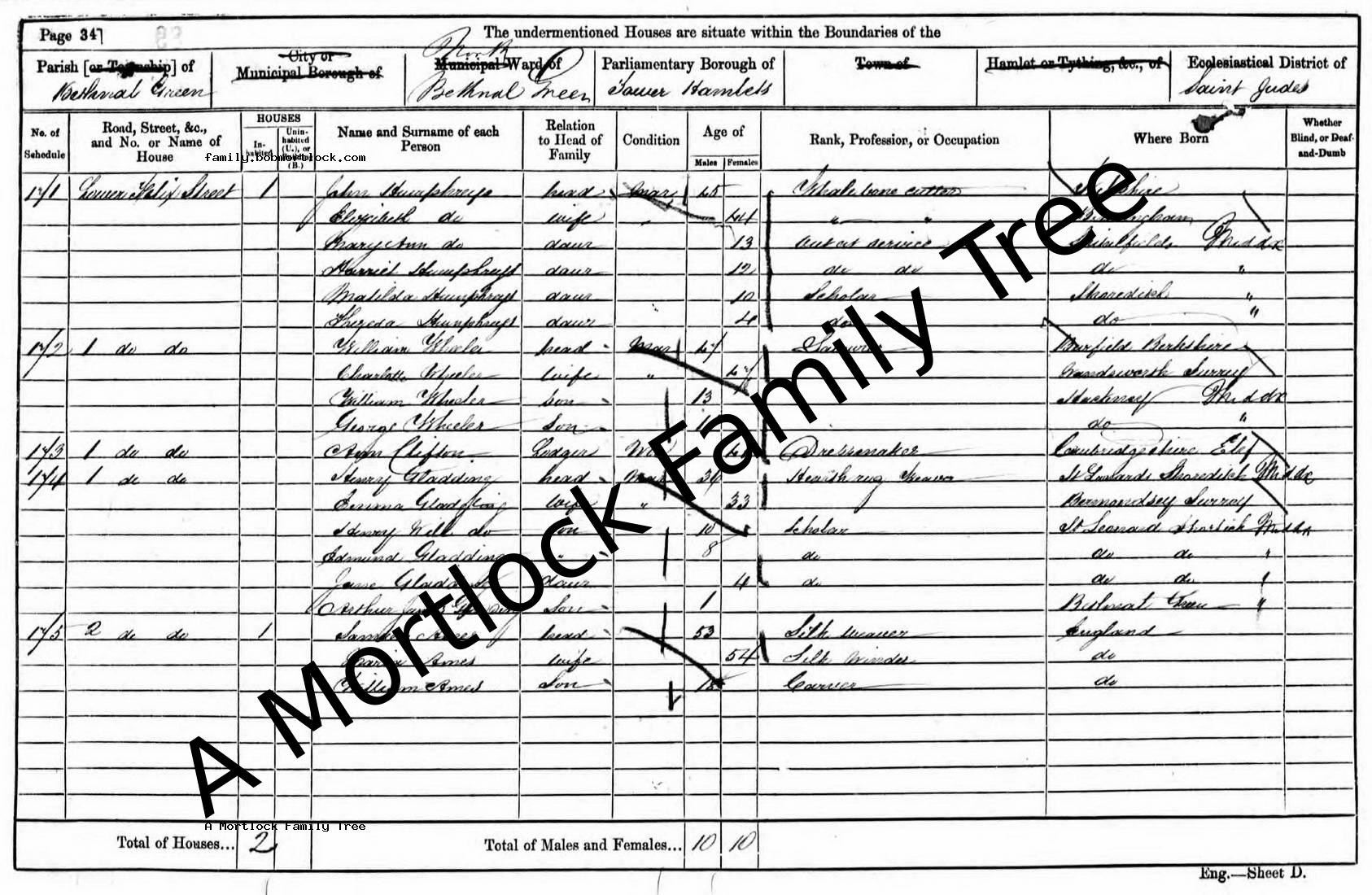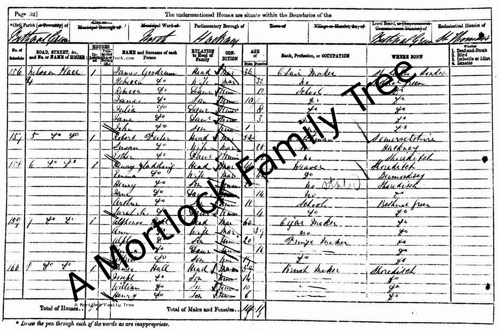 | Census | 2 April 1871 (Age 42) Bethnal Green, E London, England Address: 6 Nelson Place