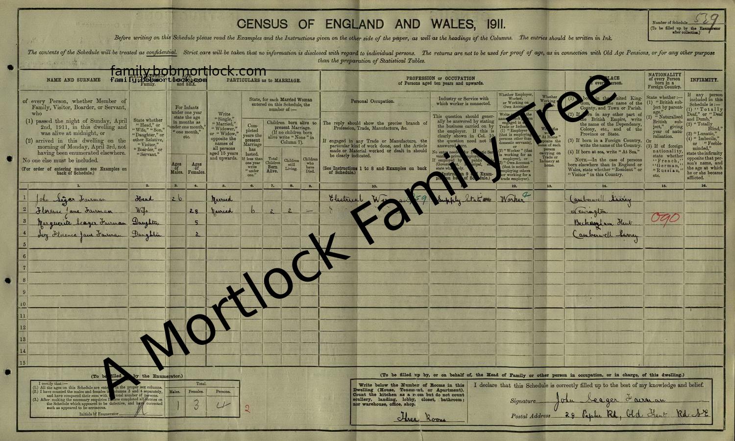 | Census | 2 April 1911 (Age 28) Camberwell, S London, England Address: 28 Pepler Road