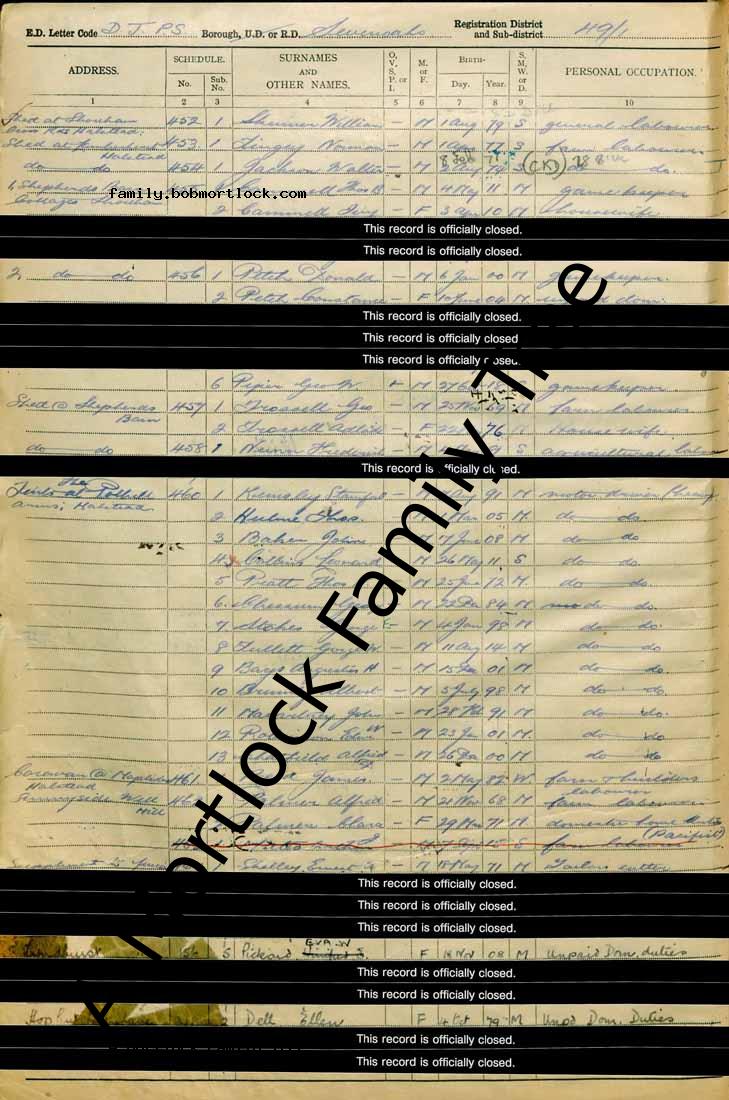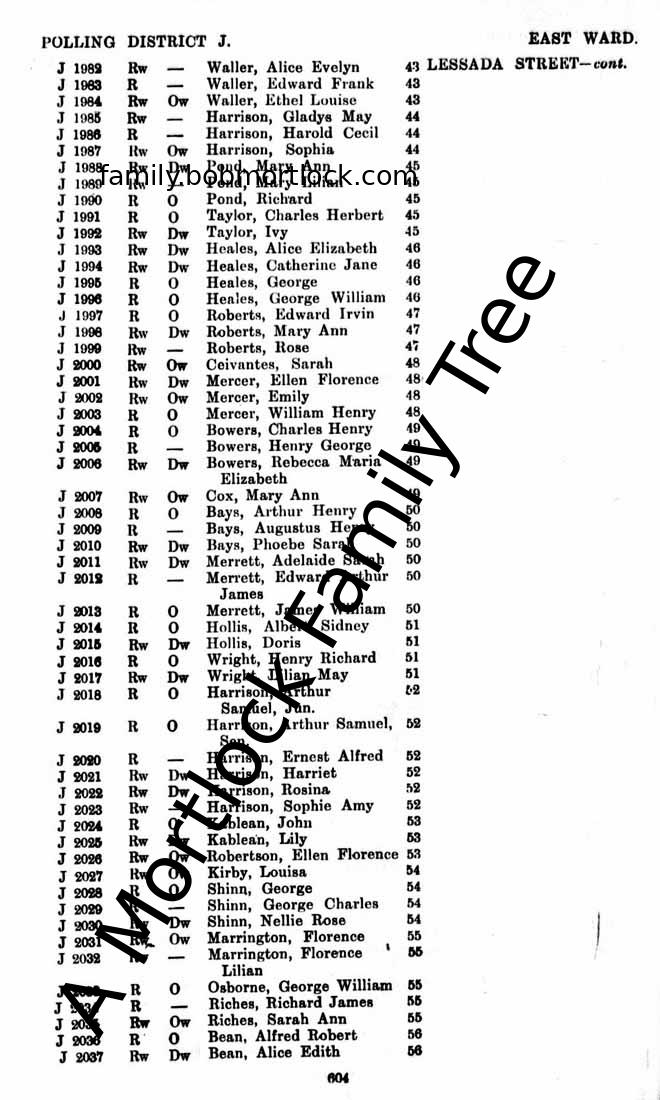 | Electorial Register | 1939 (Age 37) Norwood, Surrey, England Address: 85 Beechdale Road |