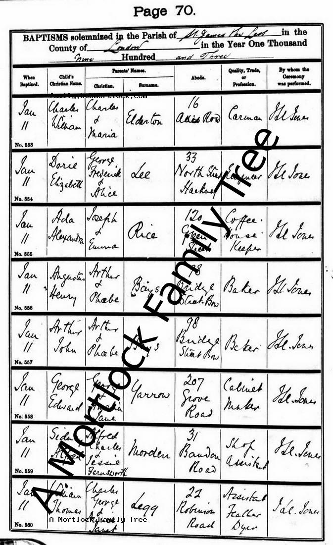 | Baptism of a Brother | 11 January 1903 (Age 12 months) Bethnal Green, E London, England