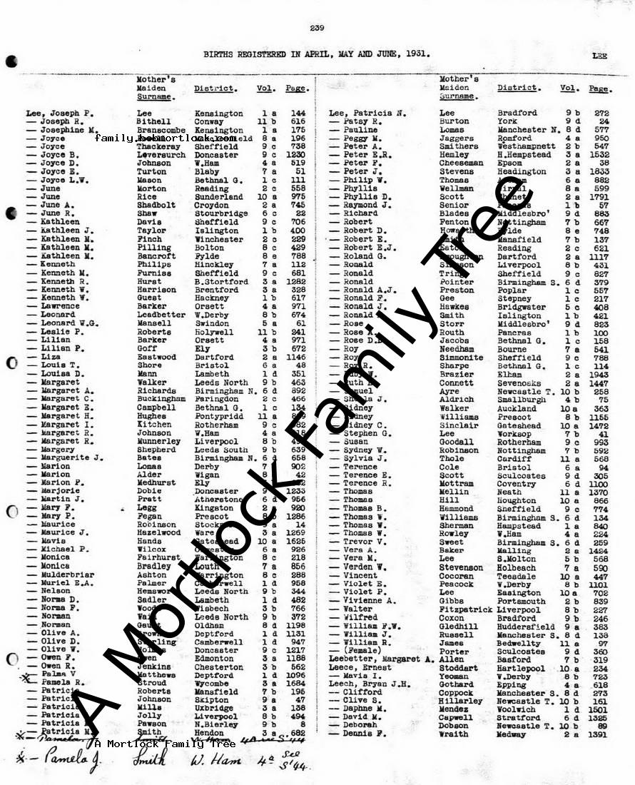 | Birth/Marriage/Death |