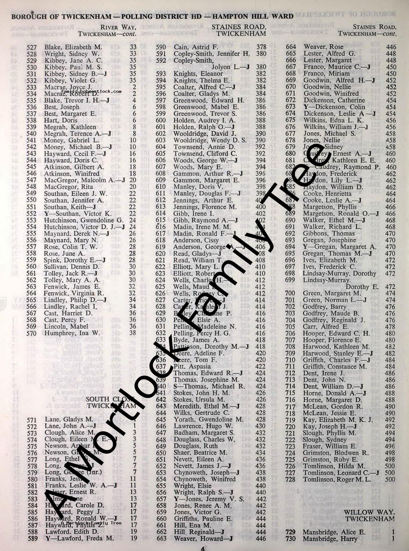 | Census | 29 September 1939 (Age 33) Twickenham, Middlesex, England Address: 406 Staines Road |