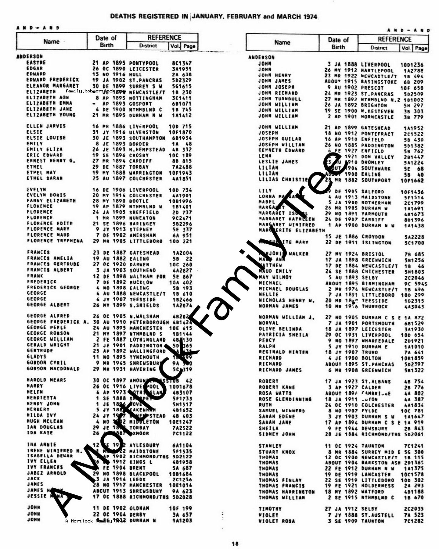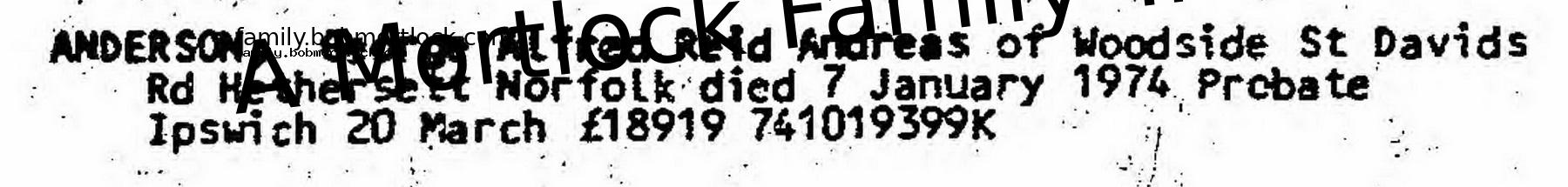 George Alfred Reid Andreas ANDERSONAge: 681905–1974