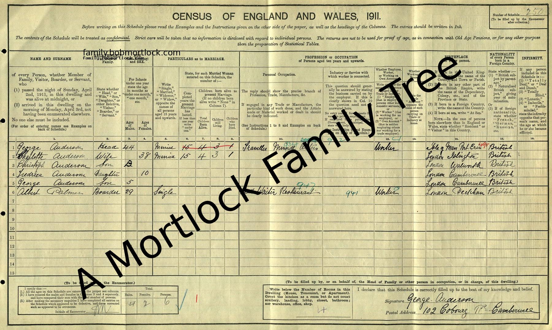 | Census | 2 April 1911 (Age 5) Camberwell, S London, England Address: 102 Cobourg Road |