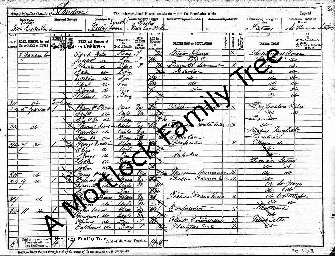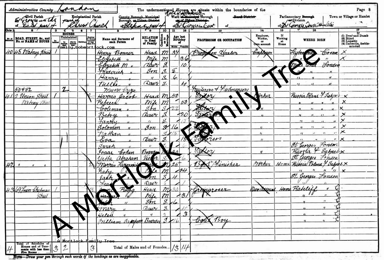 | Census | 31 March 1901 (Age 10) City of London, England Address: 48 Watney Street