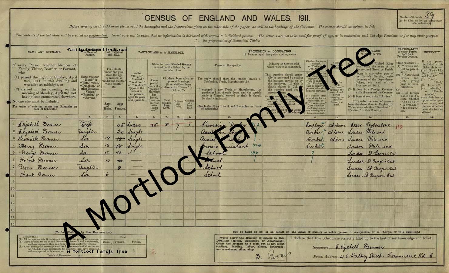 | Census | 2 April 1911 (Age 20) City of London, England Address: 47 Watney Street